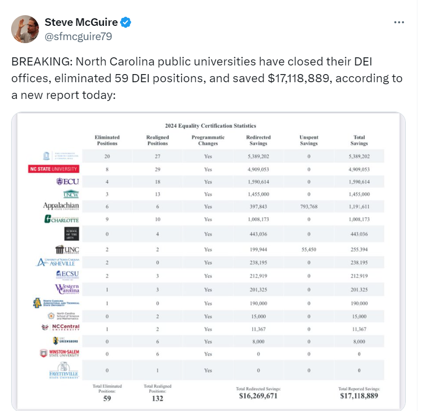 That’s the amount the state’s public universities are saving after significantly cutting back DEI offices and staff positions across the state network.